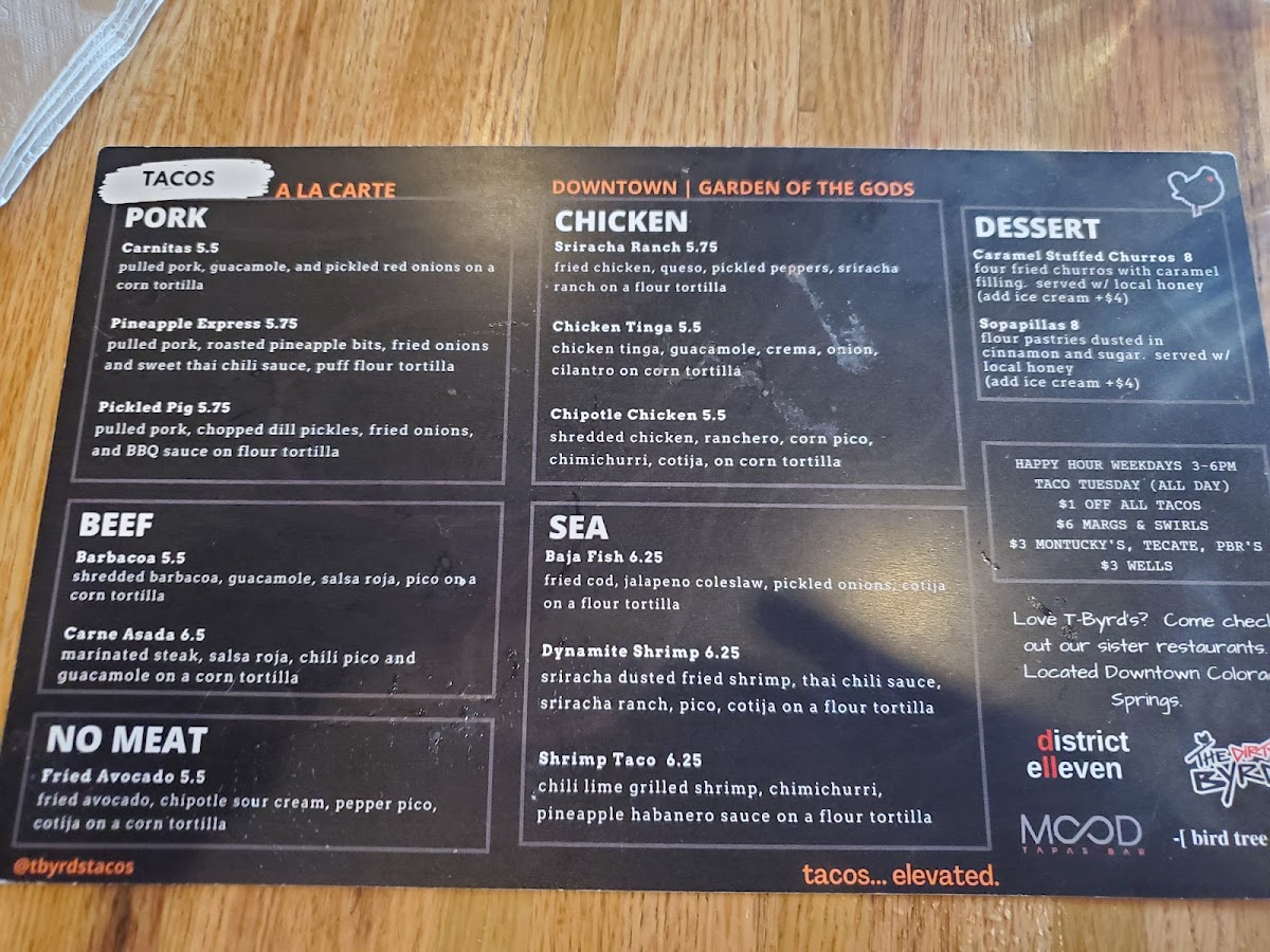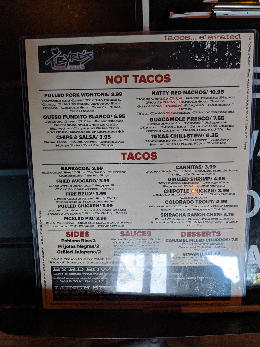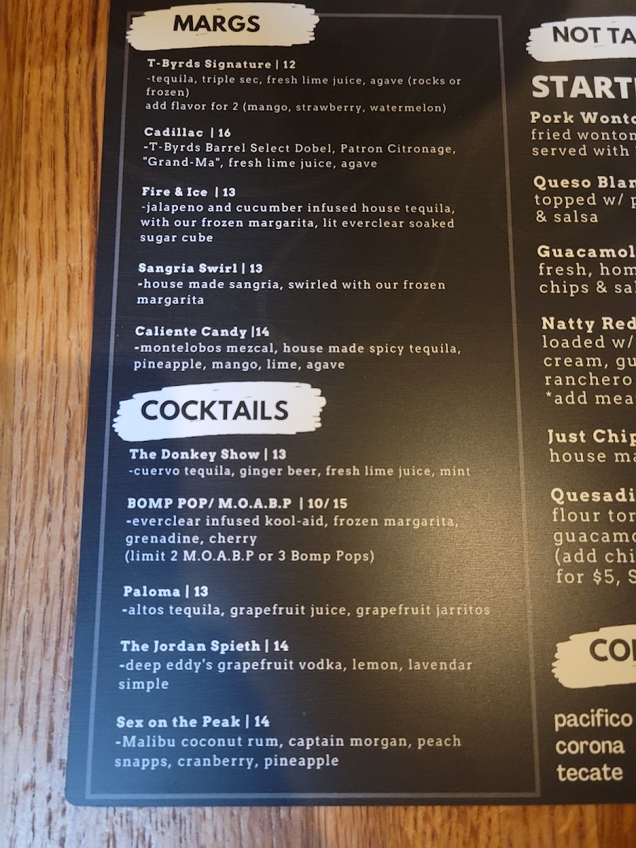 T-Byrds Tacos & Tequila Menu (2025 Update)