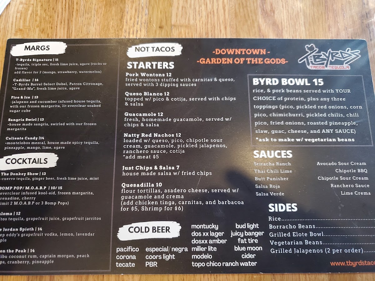 Welcome to T-Byrds Tacos & Tequila, a vibrant culinary gem located at 218 N Tejon St, Colorado Springs. This hotspot is renowned for its deliciously crafted tacos and refreshing cocktails.